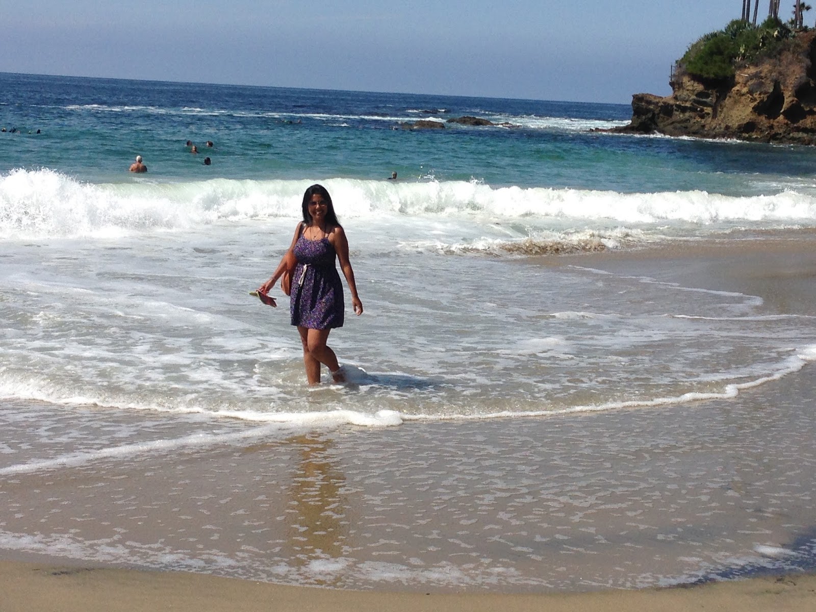 A faixa de areia é bem menor que a maioria das praias californianas e o mar de água azul clara. Bem parecido com as praias do Rio. Porém é daquele tipo de praia que engana, que tem correnteza e afunda rápido, então não extrapolei haha