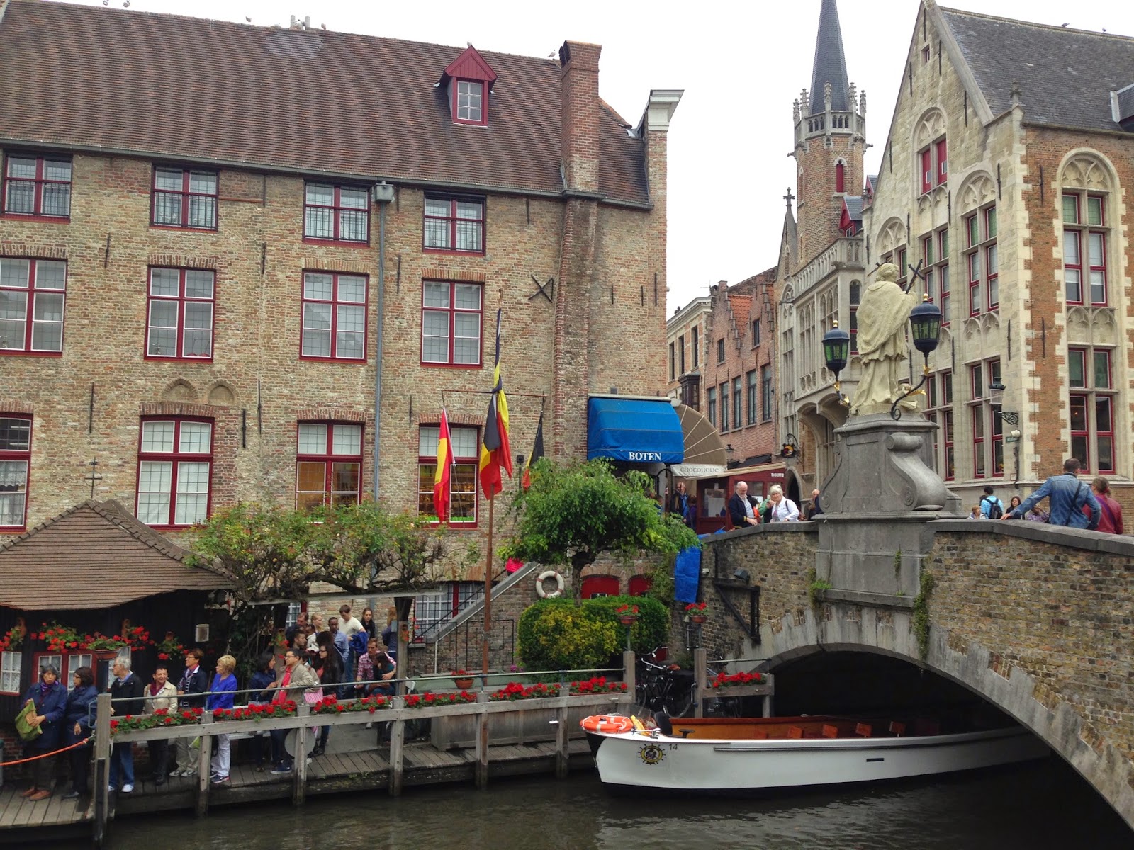 No caminho, bem pertinho do St. Johns, vi um dos pontos de passeios de barco, como estava com uma fila mínima, não perdi tempo e logo comprei o ticket : o passeio de barco pelos canais em Brugge é IMPERDÍVEL!